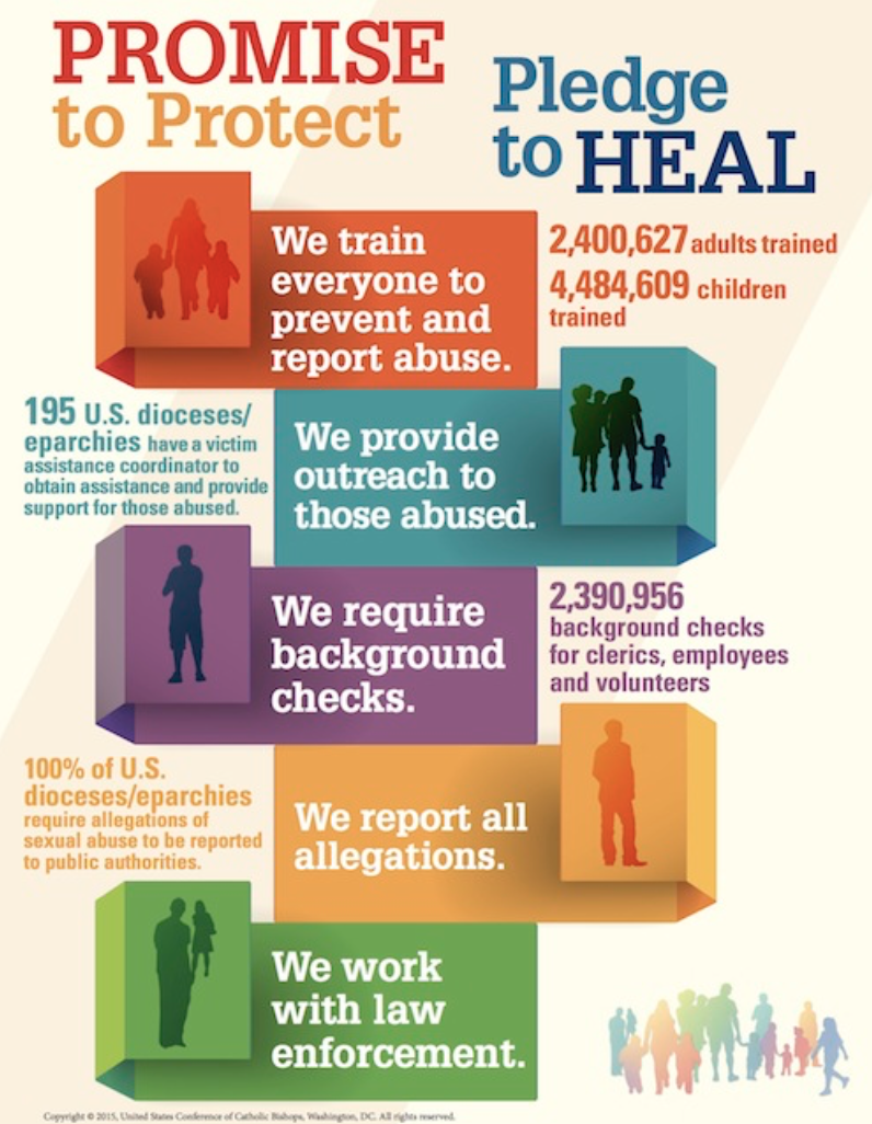 We as a Parish Community, are committed to maintaining a Safe Environment within all aspects of our Church Family. The Universal Catholic Church requires all employees and volunteers participating in Ministries in direct contact with children and vulnerable adults to be trained in Protecting God’s Children, (PGC).